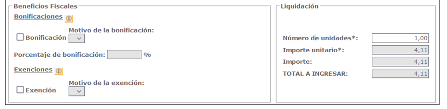 En el apartado “LIQUIDACIÓN” –> Marcar en “Número de Unidades”:1