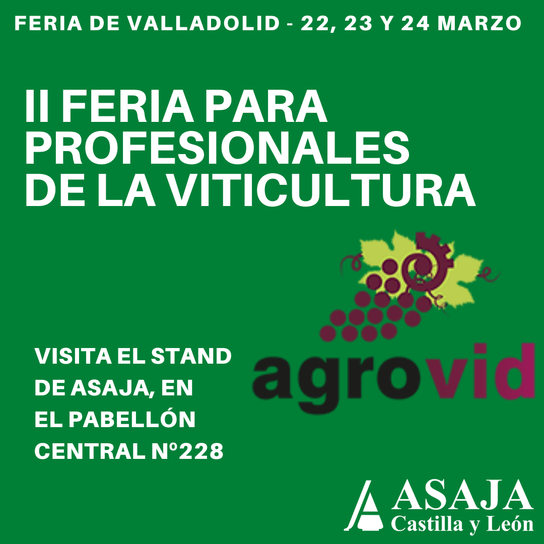ASAJA contará con stand en Agrovid, la feria del cultivo del viñedo, que acogerá la Feria de Valladolid desde mañana martes 22 y hasta el jueves 24 de marzo. En esta segunda edición, junto a Agrovid se celebrará otro certamen complementario, el Salón Ibérico de equipamiento para bodega (SIEB).