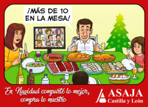 Coincidiendo con las fechas navideñas, y como ya es habitual, ASAJA ha solicitado a los consumidores que apoyen al sector agroganadero de Castilla y León y de España pidiendo en sus puntos de distribución habituales productos autóctonos. Esta petición se refuerza con el mensaje “En Navidad compra lo mejor, compra lo nuestro”, que centra la felicitación que la organización agraria envía y transmite estos días por las redes sociales, con el ánimo de involucrar “en estas fechas navideñas, y también a lo largo de todo el año”, al mayor número posible de consumidores en la defensa del producto local y de cercanía.