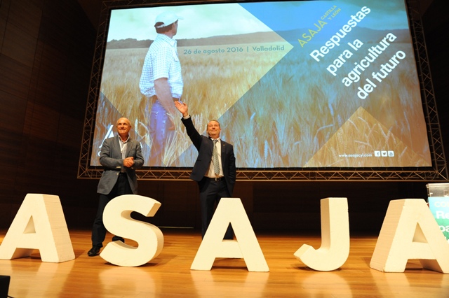 La candidatura de Donaciano Dujo, presidente, y José Antonio Turrado, secretario general, reelegida por aclamación por los cerca de 400 compromisarios de las organizaciones provinciales de la Comunidad Autónoma, reunidos el viernes 26 de agosto en el Auditorio Miguel Delibes de Valladolid, en el IX Congreso de ASAJA de Castilla y León.