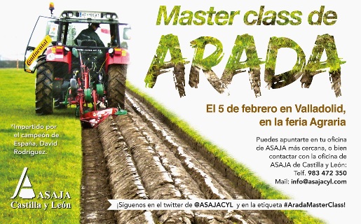 En el marco de la Feria Agraria, que celebra su cuarta edición en Valladolid la primera semana de febrero, ASAJA de Castilla y León organizará una “Master Class” de Arada. En ella, el campeón nacional, el leonés David Rodríguez, junto a otros especialistas, explicará a los agricultores interesados las normas de los campeonatos profesionales de la labor agrícola por excelencia.