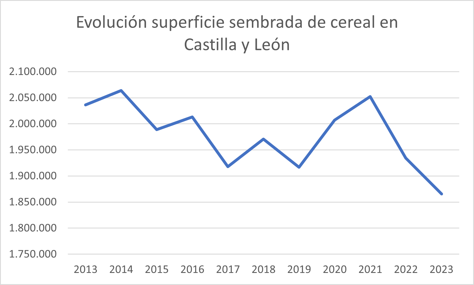 Evolución de la superficie de cereal (hectáreas) Castilla y León