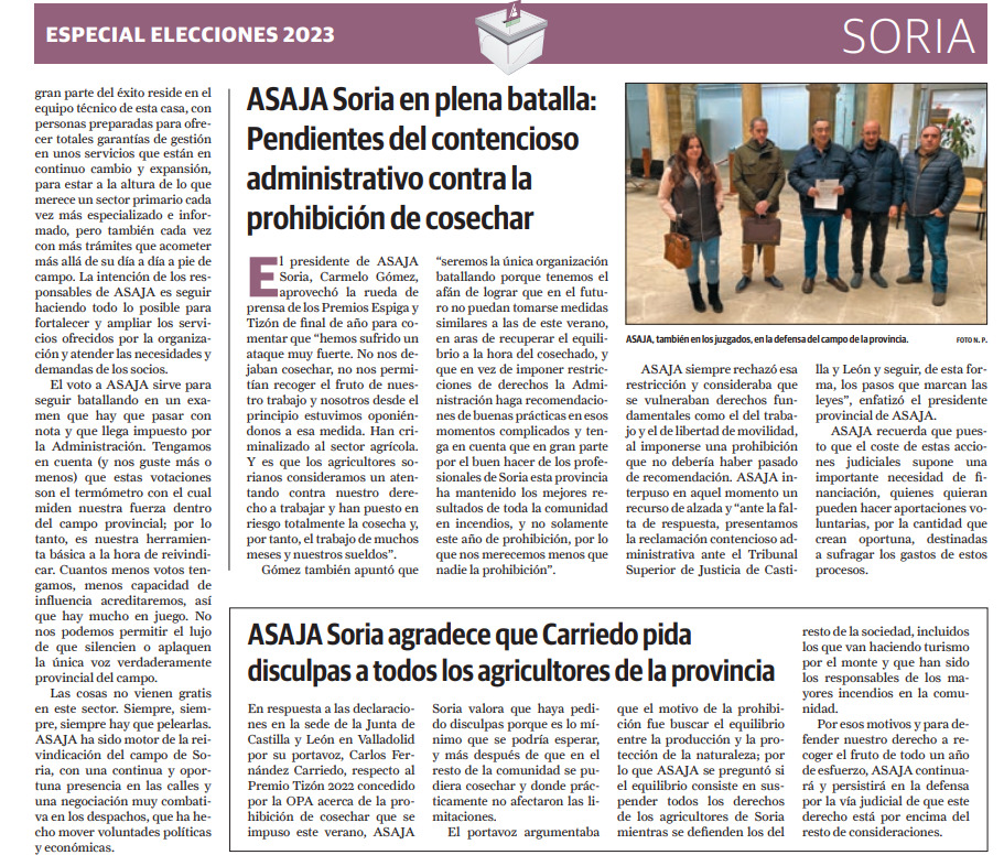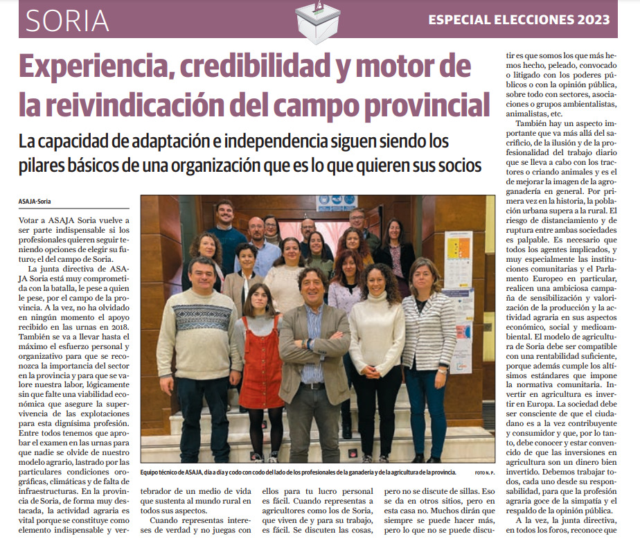 Votar a ASAJA Soria vuelve a ser parte indispensable si los profesionales quieren seguir teniendo opciones de elegir su futuro; el del campo de Soria.