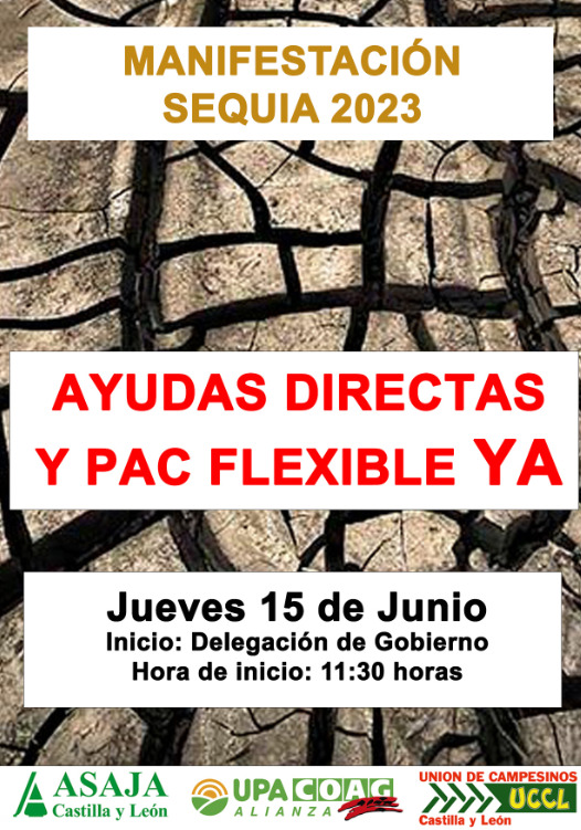 El JUEVES 15 DE JUNIO, las organizaciones profesionales agrarias, en unidad de acción, convocan a los agricultores y ganaderos de Castilla y León a participar en una MANIFESTACIÓN que recorrerá las calles de Valladolid.Las lluvias de los últimos días poco o nada han cambiado la grave situación en un sector endeudado en la campaña con costes de producción más altos de la historia, y que encima vendrá con una productividad pésima, con una de las cosechas peores de los últimos años. Unido a los costes disparados de la alimentación para el ganado, crea una situación difícil de soportar, que puede llevarse por delante a muchas explotaciones.
