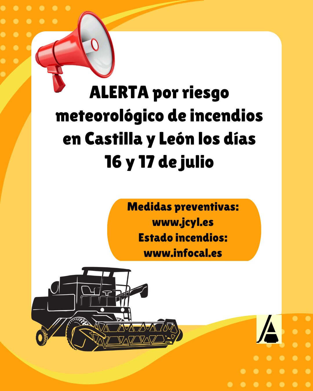 Por otro lado, la Junta advierte que en los últimos días se han producido incidencias de incendios, de forma reiterada, provocadas por las cosechadoras, ya sea por el contacto de elementos metálicos con el suelo o por deflagraciones de las máquinas por un mal mantenimiento. Por ello, la Junta recuerda que «es imprescindible tener especial atención en las horas centrales del día. Se recomienda posponer las labores no urgentes, evitar los trabajos en las franjas horarias de mayor riesgo y mantener la máxima precaución».