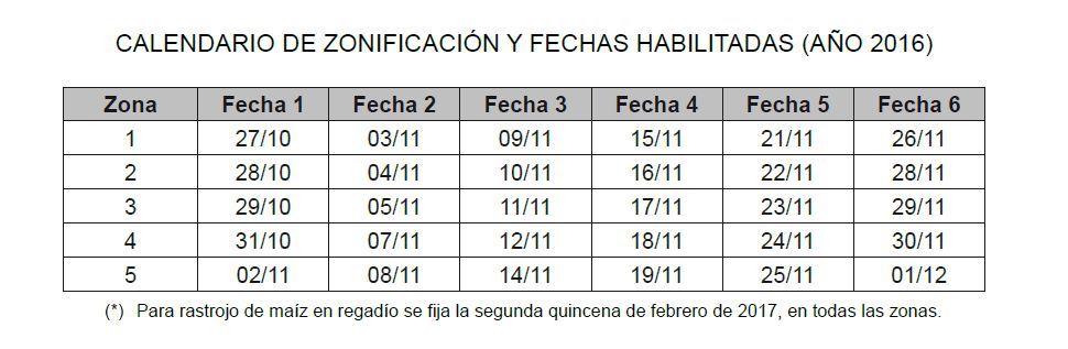 La quema de rastrojos de cereales autorizada por la Junta de Castilla y León solo podrá efectuarse en la época de peligro bajo de incendio que establezca la Consejería de Fomento y Medio Ambiente, y respetando además el calendario establecido en la Orden para cada comarca. En la orden se establece el calendario de quemas de rastrojos, por zonas y fechas; el primer día será el 27 de octubre, para la zona 1, y el último día, el 1 de diciembre, para la zona 5. Para cada zona, se habilitan seis jornadas en las que se podrán efectuar las quemas.
