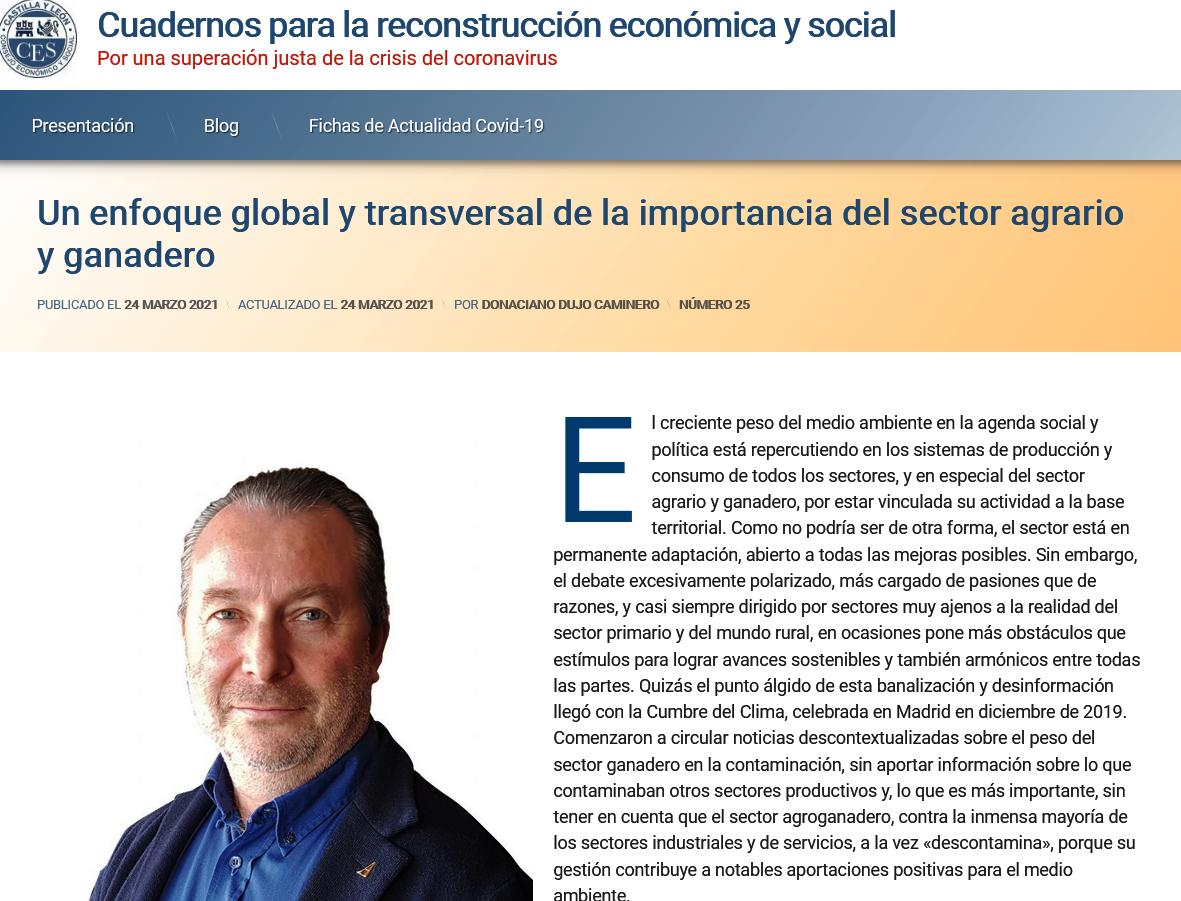 Desde la Comisión de Calidad de Vida del Consejo Económico y Social de Castilla y León, que preside actualmente Donaciano Dujo, se acordó solicitar un informe a iniciativa propia sobre “El sector agrario y la economía verde”, que en estos momentos se encuentra en fase de elaboración. Para el responsable de ASAJA, “es fundamental contar con trabajos de este tipo, que analicen la aportación real del sector agrario y ganadero, en todas sus dimensiones. Consideramos que el estudio puede arrojar luz sobre la no siempre comprendida aportación a la sociedad del sector agrario y ganadero.”.