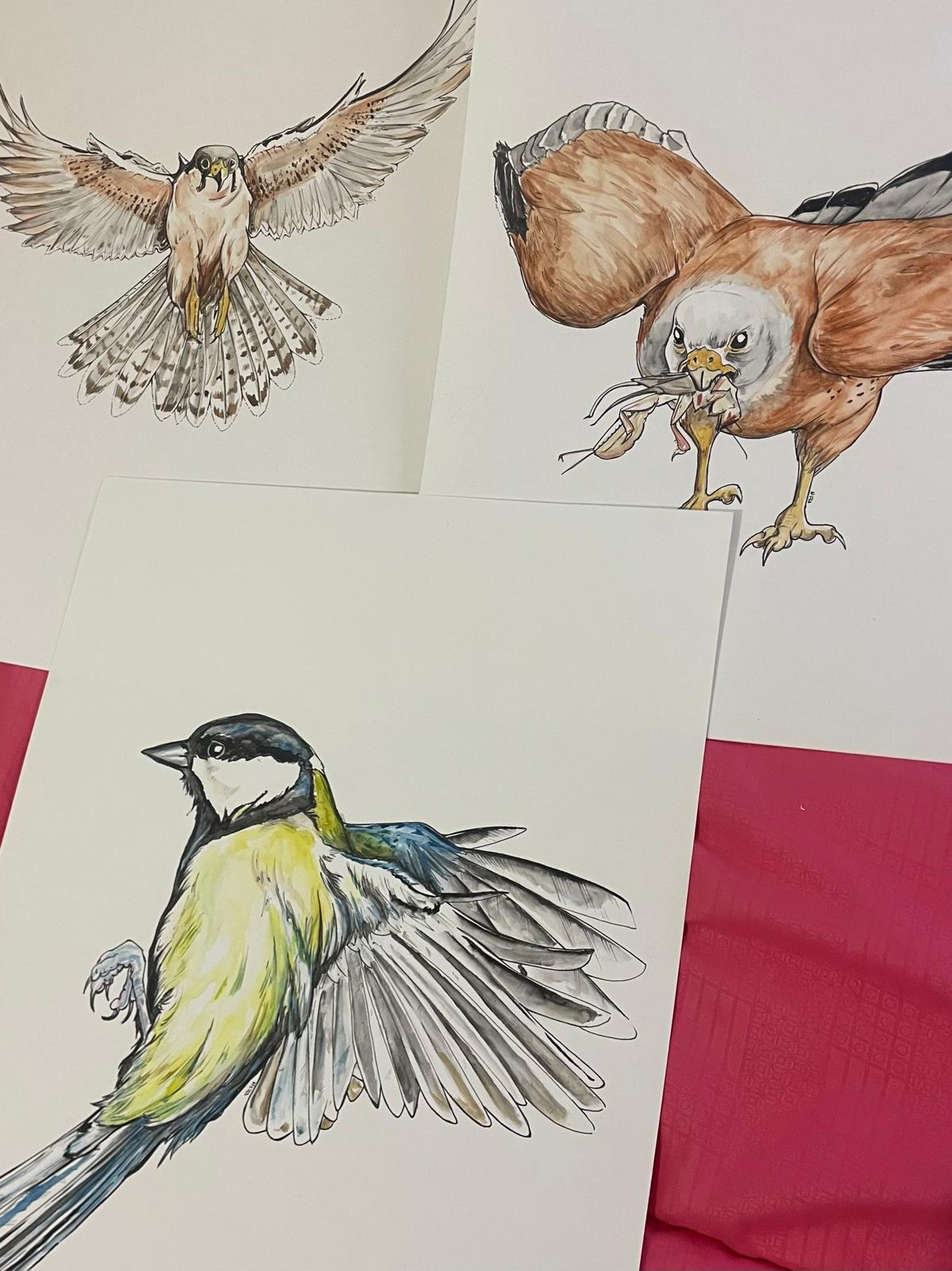 “Es una recopilación de trabajos que iba haciendo durante estos últimos años de acuarela, más unas cuantas ilustraciones, hechas con bolis de colores, de pájaros, de plantas, más de cincuenta, todas ellas a menos de un kilómetro de distancia entre la nave y mi pueblo, el camino que hago todos los días. Esa fue mi intención, recoger la belleza que nos rodea”, explica Nerea. Junto a estos dibujos, hay un apartado de retratos de ovejas, “retratos individualizados de diferentes ovejas de nuestro rebaño”, resume.