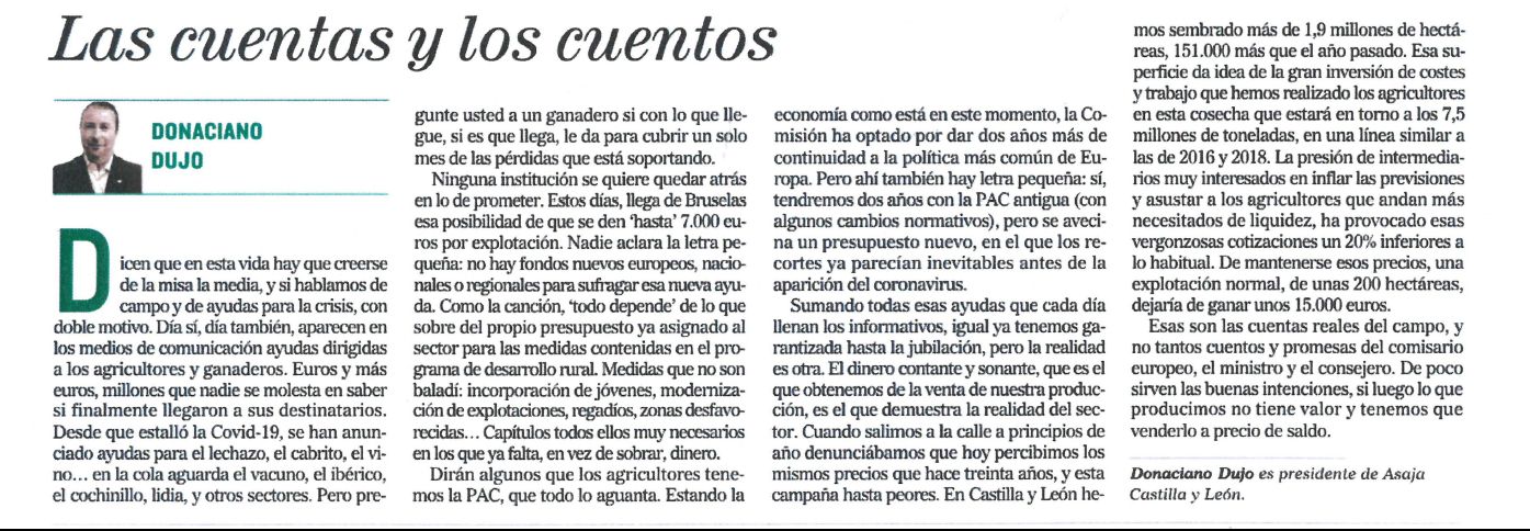 - Publicado en Mundo Agrario, suplemento de El Mundo Castilla y León, 6 julio 2020