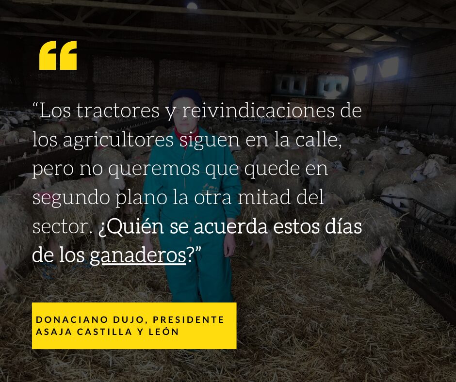 Estos días en las televisiones han salido multitud de pancartas que mostrábamos los agricultores en los frontales de nuestros tractores, desde “El campo en pie de guerra” a “No al cuaderno digital”. La presencia de los tractores quizás ha eclipsado que dentro de la palabra “Campo”, dentro del sector, hay una parte importantísima que no se ha mencionado: los ganaderos. La ganadería representa el 50 por ciento de la renta agraria de Castilla y León, más aún si viene un año de sequía agrícola. Además, es motor de empleo y fija población como ninguna otra actividad en el medio rural. Para todos es un esfuerzo acudir a una protesta, ya que tienes que retrasar las labores previstas en la explotación, pero los ganaderos directamente no pueden permitirse encadenar movilizaciones, porque tienen que atender a sus animales todos los días.
