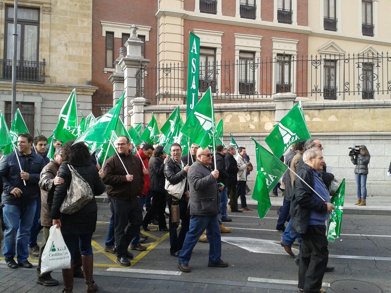 Cerca de 300 agricultores de las provincias de Castilla y León han participado en la manifestación convocada hoy en Valladolid por ASAJA contra el consejero de Economía y Hacienda, Tomás Villanueva, por la incapacidad de su departamento de hallar una solución para el problema de las ITV, que mantiene en el limbo a varios miles de tractores de Castilla y León.