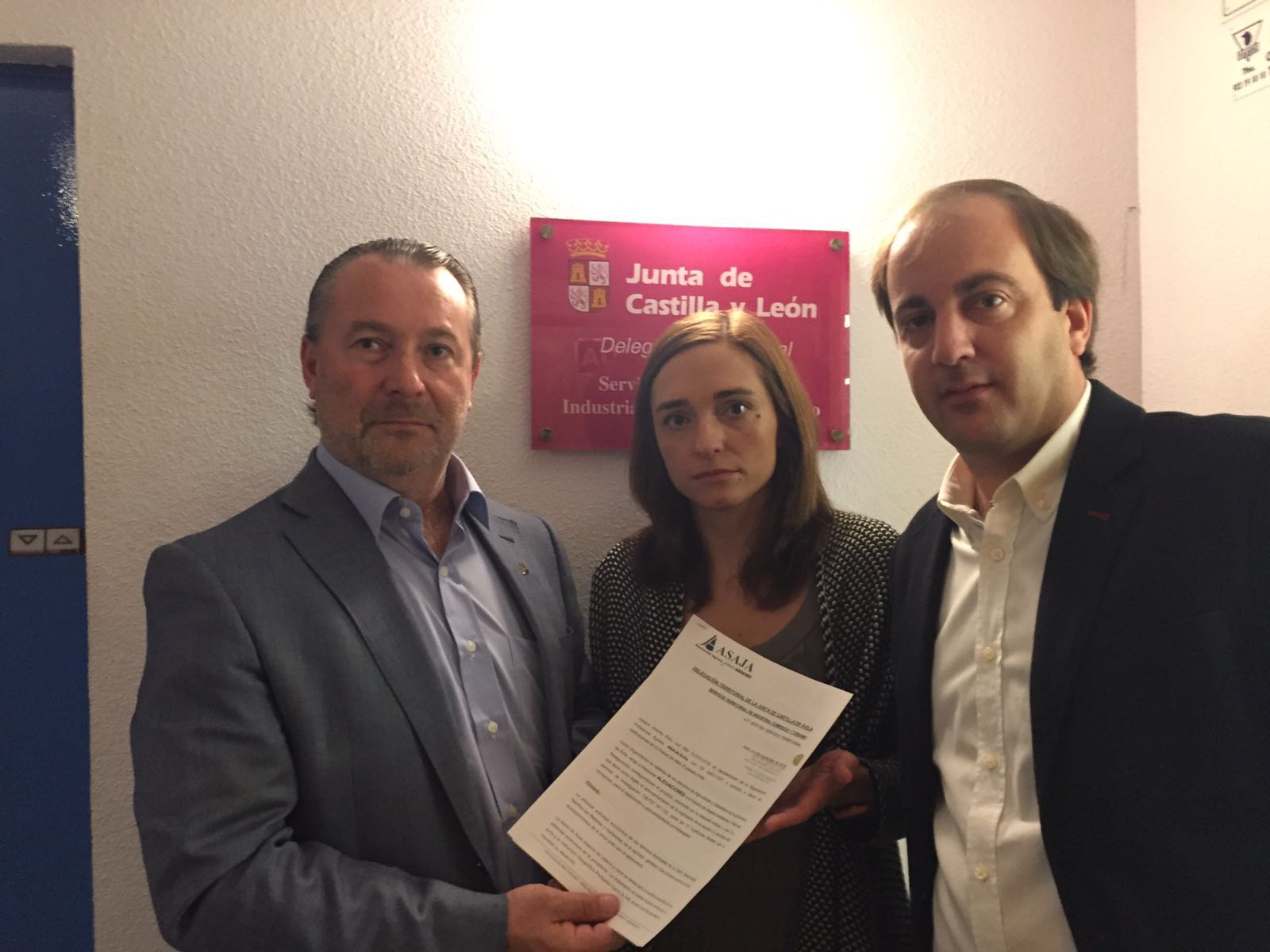 Donaciano Dujo(presidente ASAJA-CyL), Emilia Puerta(técnico de ASAJA-Ávila) y Joaquín Antonio Pino(presidente ASAJA-Ávila) en el momento de entrega de recursos ante la Administración regional.
