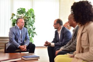 Primer encuentro de ASAJA Castilla y León con el nuevo presidente de las Cortes de Castilla y León, Luis Fuentes. En la reunión, el presidente de ASAJA, Donaciano Dujo, pidió a Luis Fuentes una mayor presencia en la actividad del Parlamento autonómico de las organizaciones profesionales agrarias, como legítimas representantes del sector. “Es muy importante que se escuche la voz del campo en las Cortes, tanto en materias específicamente agrarias y ganaderas, como en multitud de temas que repercuten en la vida de los pueblos”, apuntó Donaciano Dujo, que estuvo acompañado por el secretario general de la organización, José Antonio Turrado, y la gerente, Nuria Ruiz.