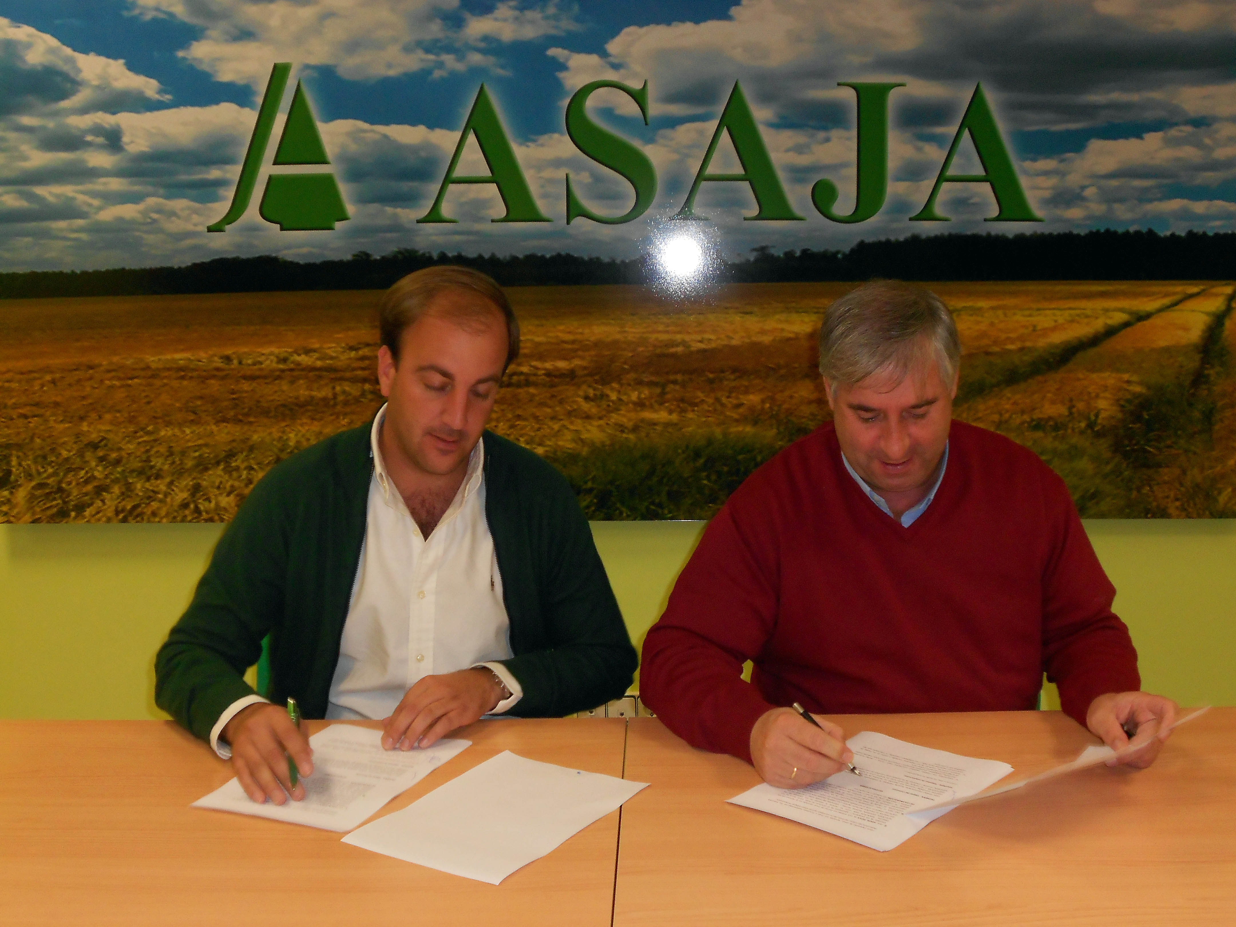 El presidente de la Asociación Agraria Jóvenes Agricultores (ASAJA) de Ávila, Joaquín Antonio Pino, y el delegado del Colegio Oficial de Ingenieros Técnicos Agrícolas de Centro (COITAC), Juan Sánchez Trujillano, han firmado hoy un convenio de colaboración, con el objetivo de prestar un mejor servicio y atención a los agricultores y ganaderos de la provincia de Ávila en diversos ámbitos, que abarcan desde la formación hasta los visados colegiales.