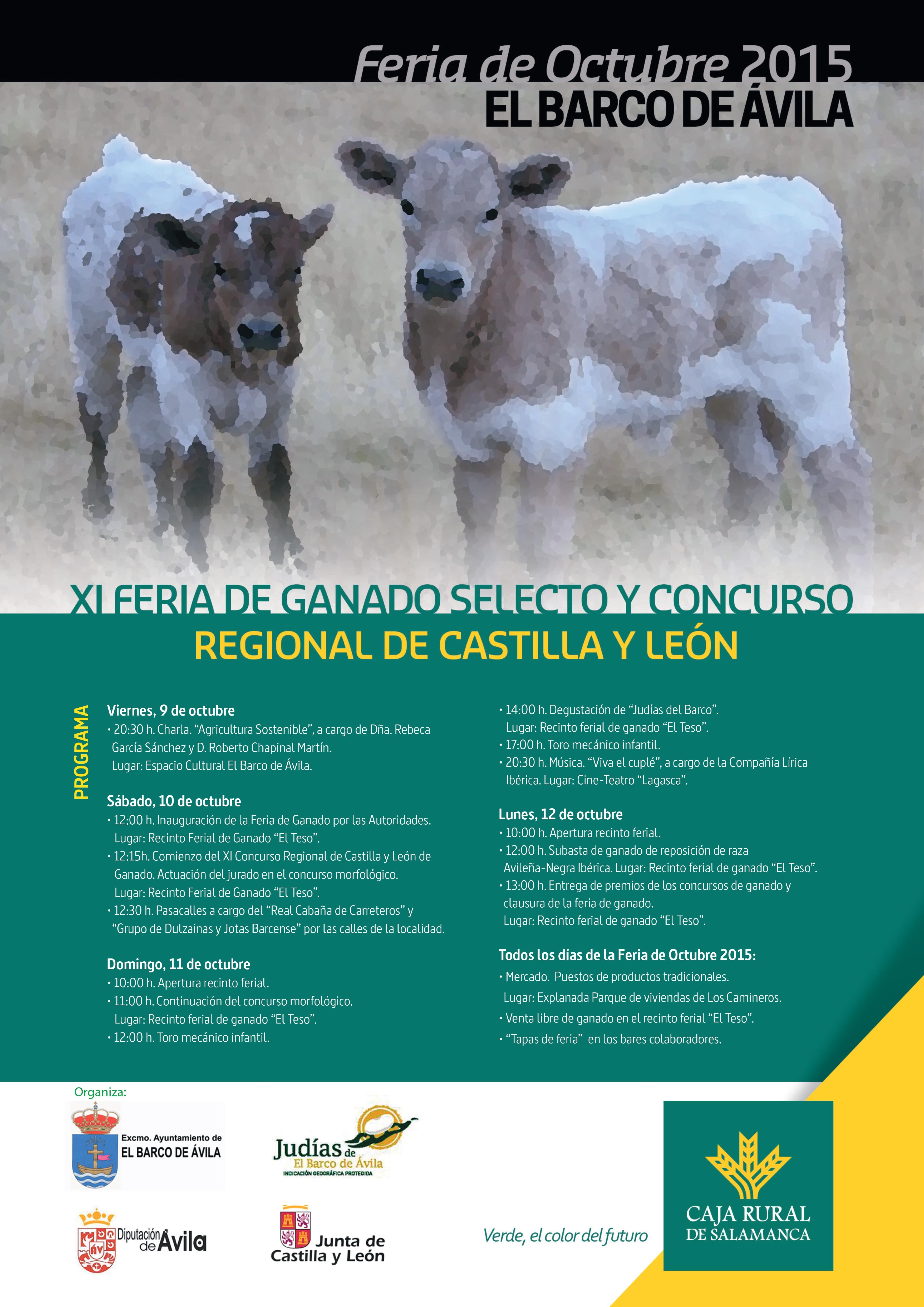 El programa de la Feria de Octubre de El Barco de Ávila continuará el sábado con la inauguración del recinto ferial de El Teso, el XI Concurso Regional de Castilla y León de Ganado y pasacalles de grupos folklóricos por las calles de la localidad.