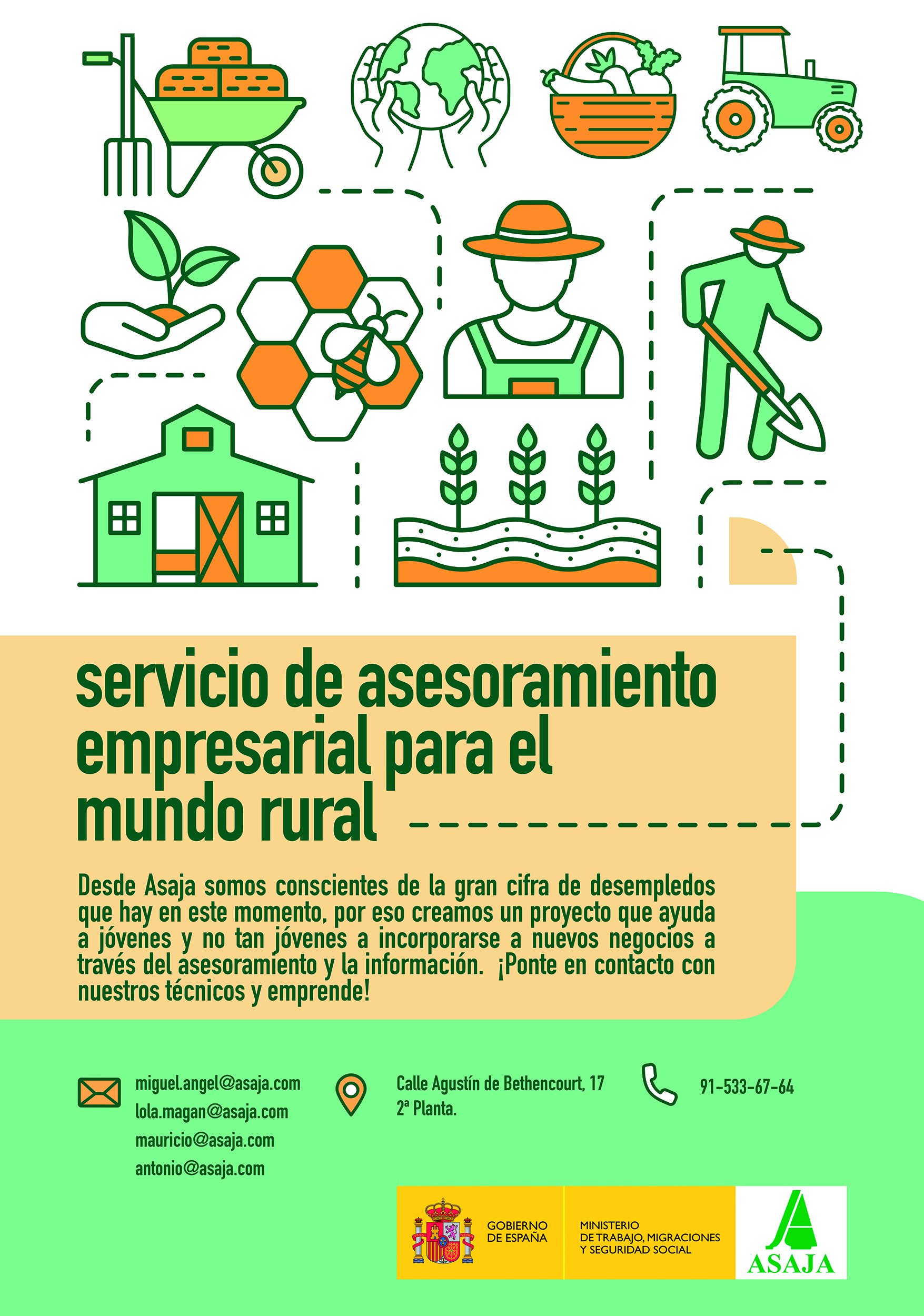 Muchos de ellos acuden a nuestras oficinas preguntándonos cuestiones relacionadas con este tema y es por esto que desde Asaja queremos desarrollar este proyecto, para ayudar y asesorar a todos aquellos que decidan incorporarse a un nuevo negocio, no solo en el ámbito agrario, ya que una gran cantidad de estas personas no terminan de decidirse a incorporarse al régimen especial de trabajadores autónomos (RETA).