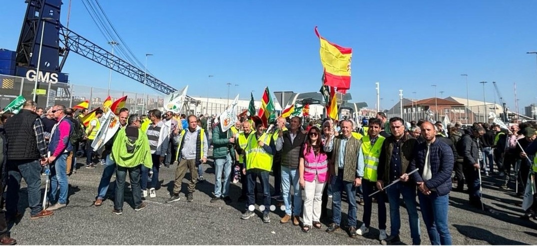 Hoy los agricultores de Castilla y León han trasladado sus protestas al Puerto de Santander, en una protesta organizada en unidad de acción por ASAJA con COAG y UPA, para denunciar la situación crítica que vive el sector y especialmente los precios ruinosos que se están pagando por el cereal, cuya cotización se ha hundido por causa de las masivas importaciones de grano procedente de terceros países, como Rusia y especialmente de Ucrania.