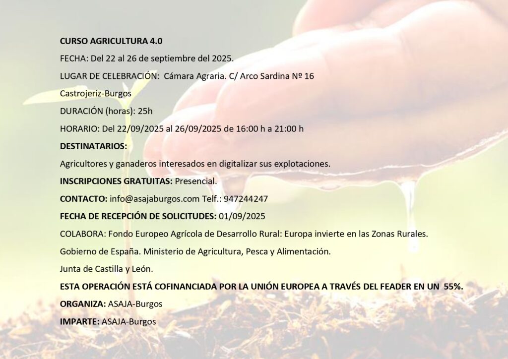 Curso de Agricultura 4.0 en Castrojeriz. Del 22 al 26 de septiembre de 2025.