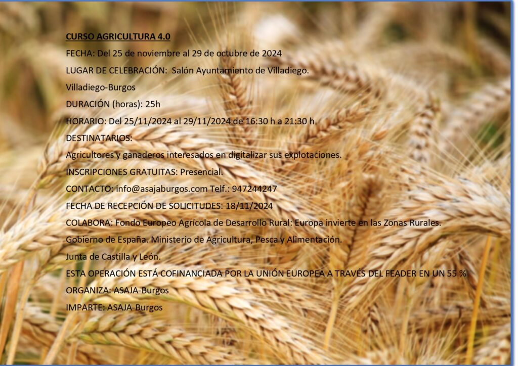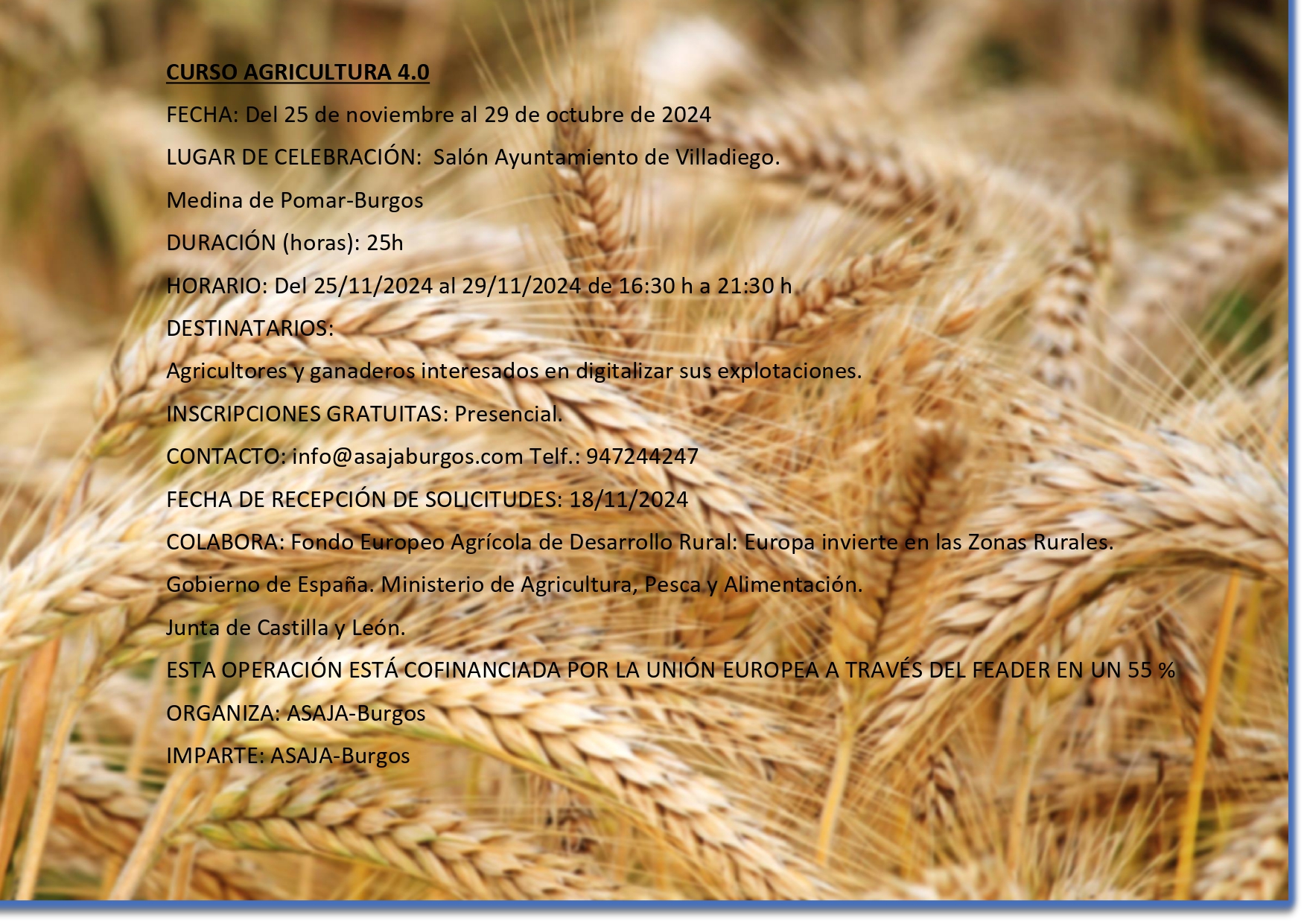 Inicio ASAJA Burgos informa CURSO DE AGRICULTURA 4.0. Del 25 al 29 de noviembre, en Villadiego.