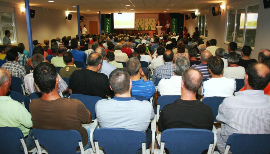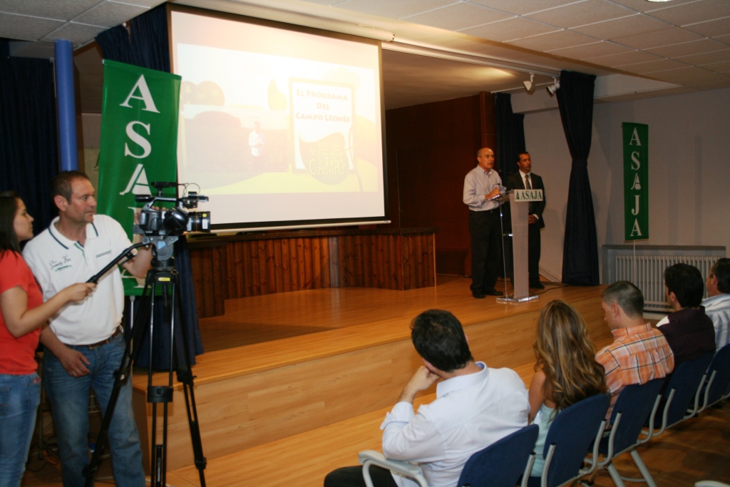 El salón de actos del centro cívico de Santa María del Páramo se llenó de agricultores en la tarde del martes 23 de julio con motivo de la presentación del programa “A pie del Campo”, un espacio en la televisión local que nace fruto del acuerdo entre ASAJA y La 8 de RTVCYL. En el acto se emitió un programa en pruebas que se puede visionar en la web de ASAJA León –www.asajaleon.com-, a la espera de la primera emisión que tendrá lugar a las 14,30 horas del sábado 3 de agosto. En este proyecto es imprescindible la colaboración de ya una docena de empresas que son clientes o proveedoras de bienes y servicios de las explotaciones agroganaderas leonesas, y a las cuales tanto la dirección de la cadena como ASAJA le expresaron su agradecimiento. Además del director de Edigrup, Florencio Carrera, el director de La 8 de RTVCYL en León, Juan Fco. Martín, el directo de La 8 de RTVCYL en Ponferrada, Raúl Rodríguez y los responsables provinciales de ASAJA con el presidente regional Donaciano Dujo a la cabeza, acompañó en el acto el Director General de la Política Agraria Comunitaria de la Junta de Castilla y León, Pedro Medina Rebollo, quién dio una interesante conferencia a los asistentes sobre los acuerdos de la reforma de la PAC y las expectativas que se abren sobre su aplicación.