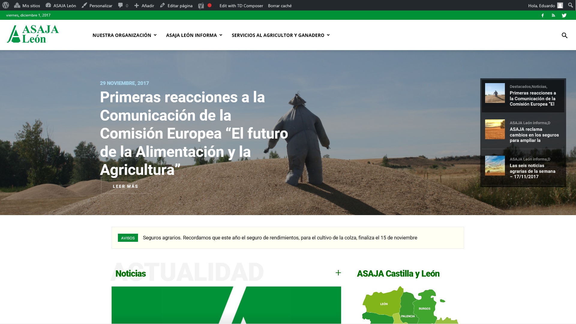 - La organización agraria ASAJA de León ha renovado su página web que cuelga de la de la organización regional junto con las de las otras ocho organizaciones provinciales. Se avanza así en una página más dinámica y moderna, para consultar tanto desde ordenadores personales como desde teléfonos móviles, donde los agricultores y ganaderos de la provincia tienen información puntual de todas las cuestiones de interés. La web de ASAJA de León lleva operativa desde el año 2003 y es la única relevante en información agraria para los profesionales del campo de la provincia. Cada año se vienen incorporando una media de 400 documentos.