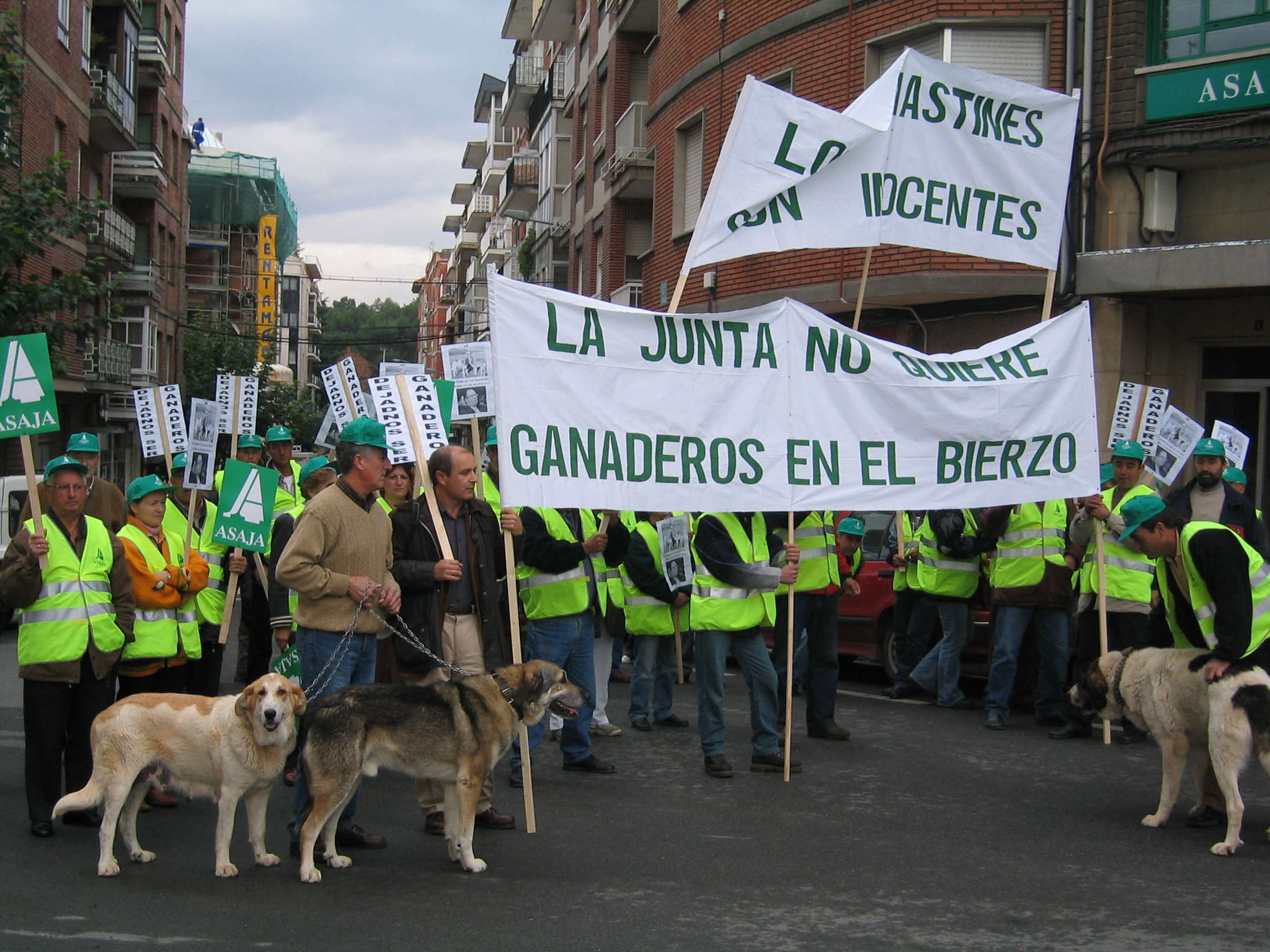 Medio centenar de ganaderos bercianos, convocados por la organización agraria ASAJA, se manifestaron en la mañana de hoy miércoles 3 de noviembre ante la delegación de la Junta en Ponferrada, en señal de protesta por la sanción impuesta a un ganadero de ovino que pastorea su rebaño con perros mastines. El motivo de la sanción es el daño que los mastines pueden ocasionar en el coto de caza.