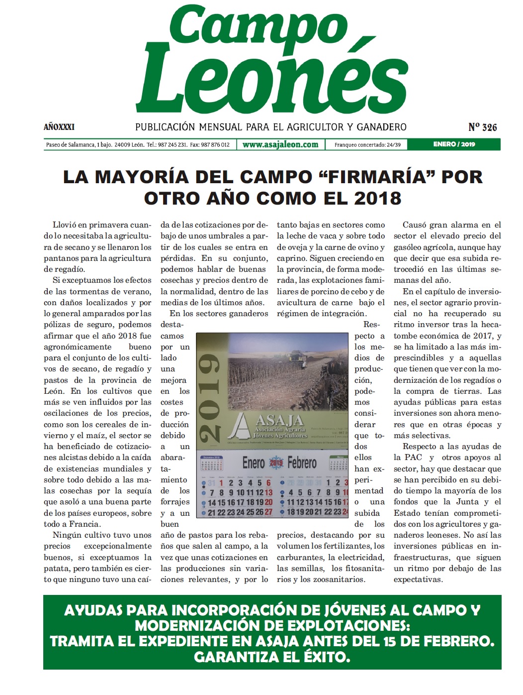 Paseo Salamanca, 1 bajo - 24009 León - España · Tel.: +34 987 24 52 31 · Fax: +34 987 87 60 12 · asaja@asajaleon.com