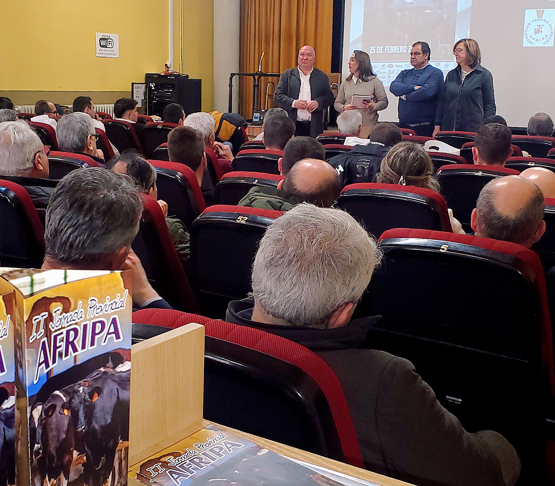 Tal y como informábamos hace unos días, la Casa de Cultura de Saldaña acogió la II Jornada AFRIPA, que inauguraron la consejera de Agricultura, Ganadería y Desarrollo Rural, María González Corral; la presidenta de la Diputación de Palencia, Ángeles Armisén; el alcalde de Saldaña, Adolfo Palacios; y el presidente de AFRIPA, Roberto Fernández Martín, tesorero de ASAJA-Palencia. Por parte de nuestra organización asistieron además nuestro presidente, José Luis Marcos, y el interventor, Carlos Franco. Previamente, efectuaron una visita a la explotación Hermanos Fernández Martín, en Dehesa de Romanos, a la que también acudió nuestro presidente regional, Donaciano Dujo. El presidente de AFRIPA agradeció la respuesta por parte de los asistentes, con un nutrido grupo de jóvenes ganaderos; así como el apoyo de las administraciones públicas, de las organizaciones profesionales agrarias, y de las numerosas casas comerciales que permiten celebrar este encuentro, que se celebra cada dos años.