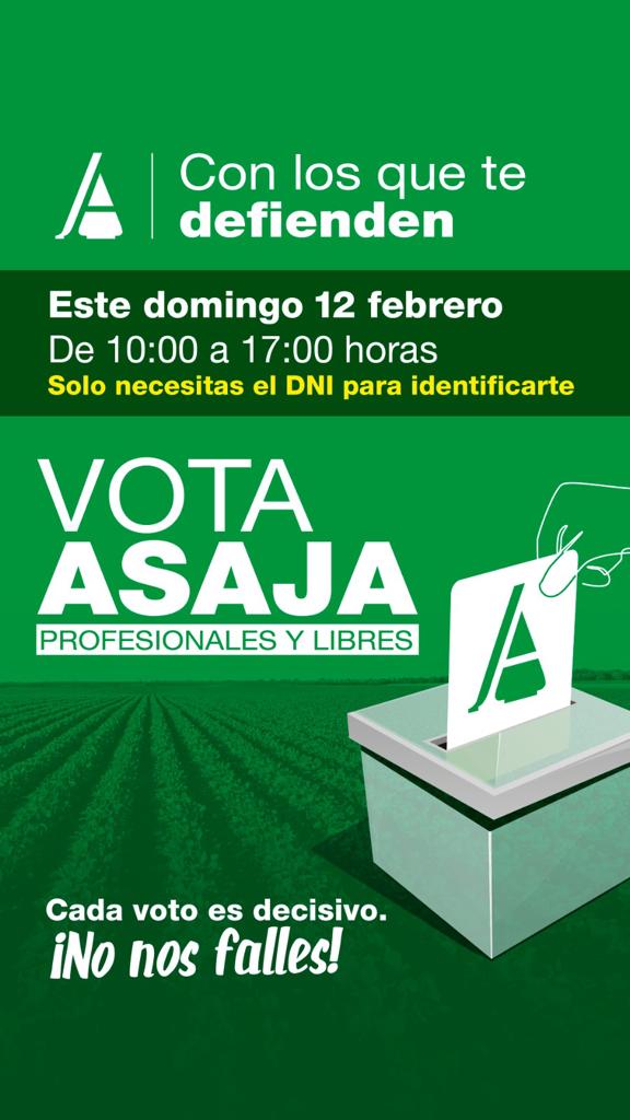 Casi 39.000 profesionales de la agricultura y ganadería están llamados a las 573 urnas que se instalarán el domingo, aunque un porcentaje de votantes, casi un 8 por ciento, ya lo hizo anticipadamente estos días de atrás. La campaña electoral ha sido excepcionalmente larga, un mes entero, y ASAJA ha intensificado en ese tiempo “lo que ya viene haciendo con regularidad y sin necesidad de que haya elecciones, porque nosotros no somos políticos. Lo que hemos hecho es rendir cuentas de nuestra labor reivindicativa, de servicios y de representación, hablando de lo que interesa al sector: la defensa de una agricultura y ganadería muy profesional, que reclama ser productiva y rentable, y además que nos dejen trabajar con libertad y con orgullo. Eso es lo que queremos los agricultores y ganaderos, y eso es lo que defiende ASAJA, y cuantos más votos con más fuerza podremos hacerlo”, apunta Donaciano Dujo, que anima a todos los agricultores y ganaderos a participar el domingo en estas importantes elecciones.