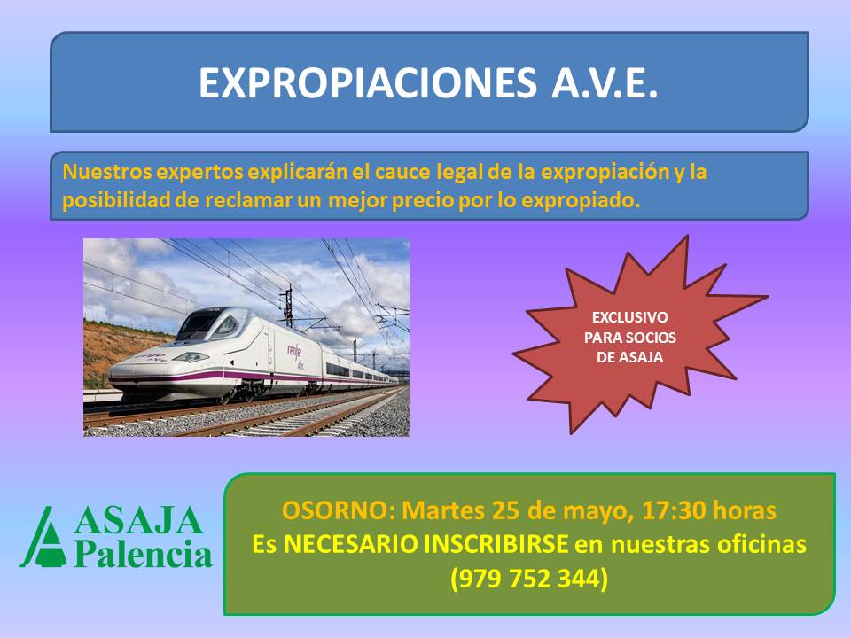 El martes, día 25 de mayo a las 17:30 horas, en el Centro Cultural de Osorno, tendrá lugar una charla informativa en la que se explicará detalladamente el funcionamiento del procedimiento expropiatorio, que se va a seguir en la expropiación forzosa que se llevará a cabo para la construcción de la línea ferroviaria del AVE Palencia-Santander.