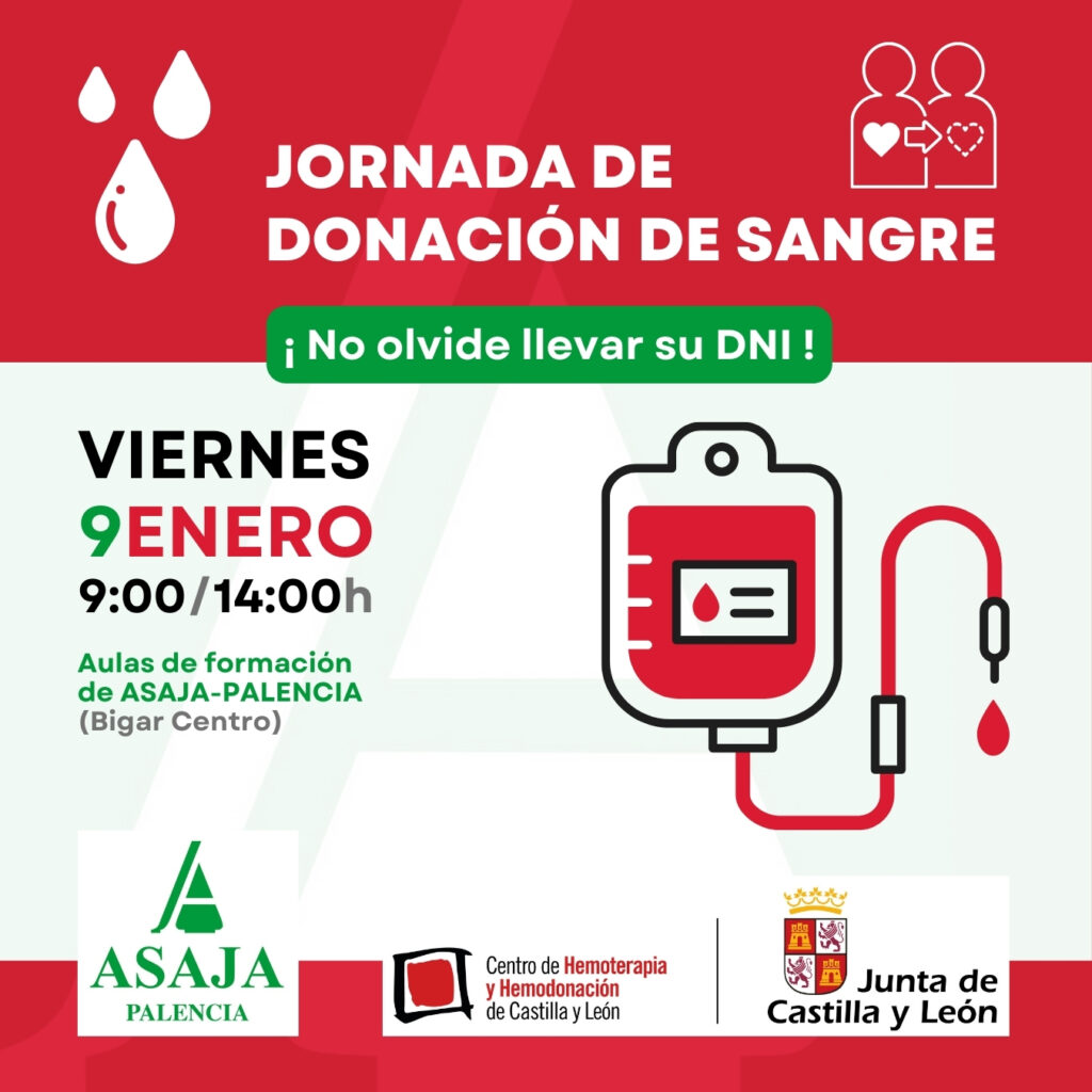 Desde ASAJA-Palencia invitamos a toda la sociedad de la provincia, y especialmente a las personas asociadas de ASAJA y sus familiares, a participar en esta campaña donando sangre en nuestras céntricas instalaciones. Donar es un gesto sencillo, seguro y solidario que salva vidas./