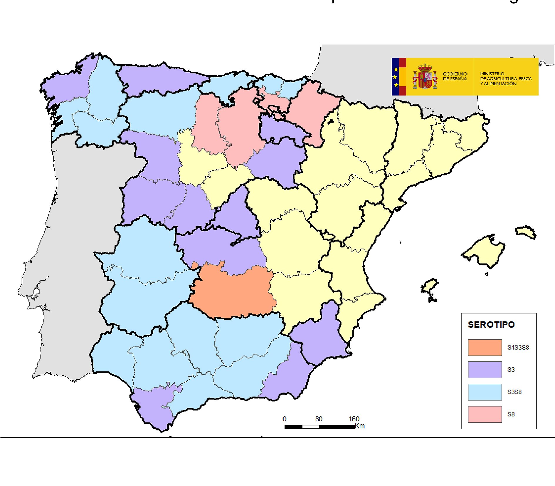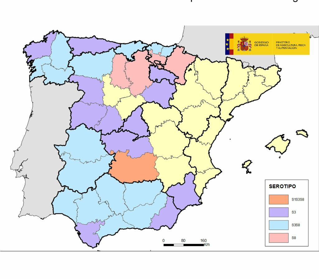 El serotipo 8 se ha confirmado hasta la fecha en Palencia, si bien existen casos de serotipo 3 pendientes de ratificar por parte del laboratorio nacional de referencia. El serotipo 8 está presente ya también en las provincias limítrofes de Burgos, Cantabria y León, provincia donde ya se ha ratificado también el serotipo 3.