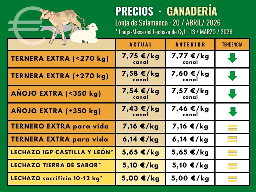 En relación a la Mesa del Lechazo de Castilla y León, se mantienen los precios del 13 de marzo hasta nueva orden.
