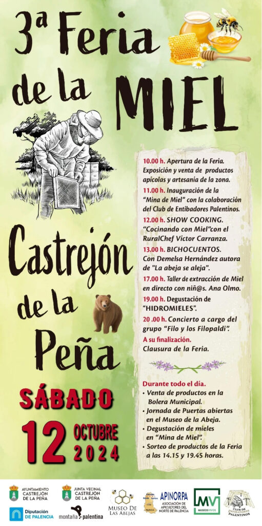 El Ayuntamiento y la Junta Vecinal de Castrejón, así como la Diputación de Palencia y la Agrupación Comarcal de Desarrollo de la Montaña Palentina, colaboran con Apinorma para celebrar esta feria, que este año se abrirá a las diez de la mañana con el mercado de exposición de productos apícolas y artesanos de la zona, en el que participarán treinta y cinco puestos. Se celebrarán dos sorteos de productos a las 14:15 horas y a las 19:45 horas.