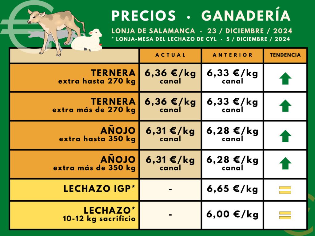 Con acuerdo rápido entre ganaderos y compradores se ha saldado este lunes en vísperas de Nochebuena la mesa del bovino de carne de la Lonja de Salamanca, que acordó una subida de tres céntimos por kilogramo en todas las categorías, salvo las vacas, que repitieron cotización. Tampoco se tocaron las tablillas del ovino.