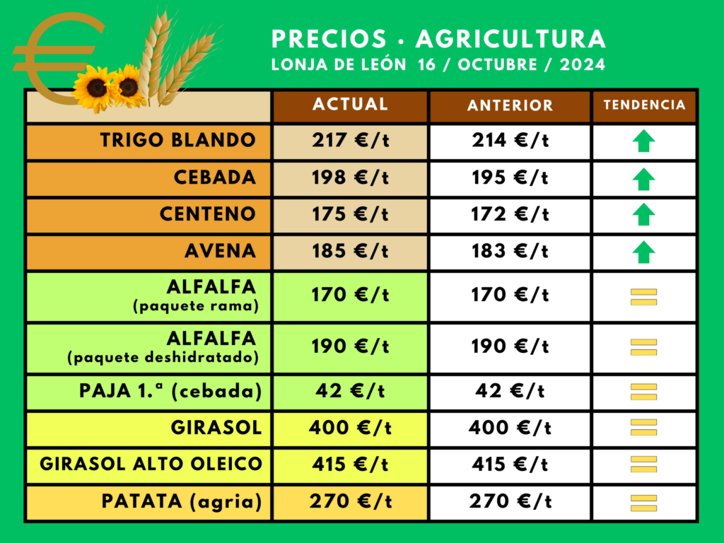 La Lonja de León celebrada esta semana constata nuevos repuntes en la mesa del cereal, pero ya más débiles que en sesiones precedentes. Tres euros por tonelada subieron el trigo, la cebada y el centeno, mientras la avena apenas se revalorizó en dos euros. En todo caso, seguimos en cotizaciones bajísimas, como viene denunciando ASAJA-Palencia, muy similares a las que se daban ahora hace tres años, que arriesgan la rentabilidad de nuestra agricultura cerealista, y llenan de incertidumbre a los profesionales ante la nueva sementera. Pero ni los piensos ganaderos, ni los alimentos con base cerealista muestran en la cesta de la compra esa regresión a precios de hace un trienio.