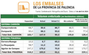 Inicio El embalse de Aguilar ya supera el promedio de agua embalsada de la última década en esta época del año Embalses-Palencia-1abril202