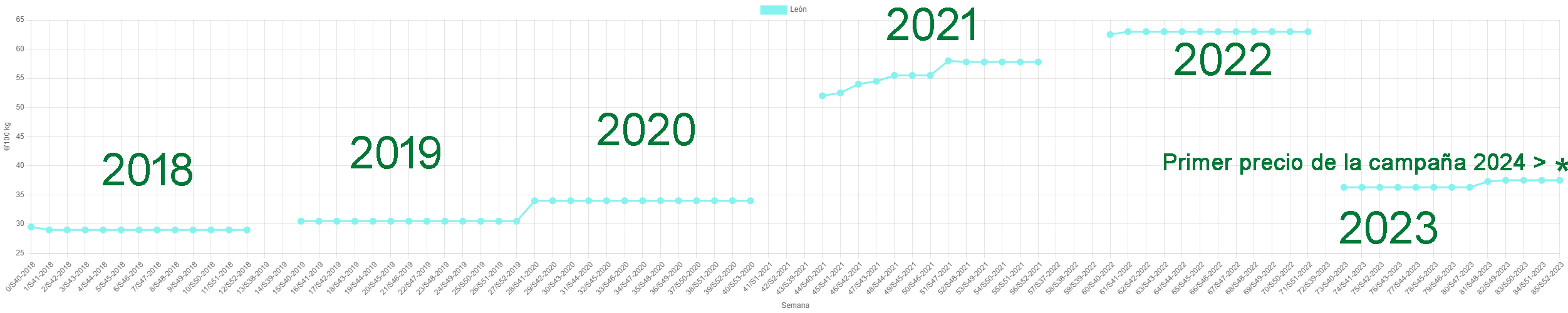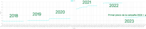 Inicio El girasol empieza a cotizar a 400 euros la tonelada, un 6,7 % más que al inicio de la campaña de 2023 Cotizacion-girasol-Leon-2018-2023