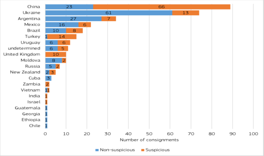 Gracias al trabajo conjunto llevado a cabo por la DG SANTE (Dirección General de Salud y Seguridad Alimentaria), el CCI (Centro Común de Investigación) y la OLAF (Oficina Europea Anti-Fraude), la Comisión Europea ha cuantificado una realidad alarmante: se sospecha que, de las 320 muestras recibidas de las autoridades nacionales competentes, 147 (46%) no cumplen con los requisitos de la Directiva comunitaria sobre la miel. Casi el 74% de las muestras de miel chinas, el 93% de las turcas y el 100% de las británicas se consideraron sospechosas.