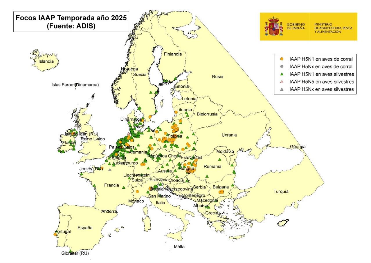 Inicio El Ministerio levanta las medidas preventivas contra la gripe aviar que decretó el pasado enero Focos-gripe-aviar-Europa