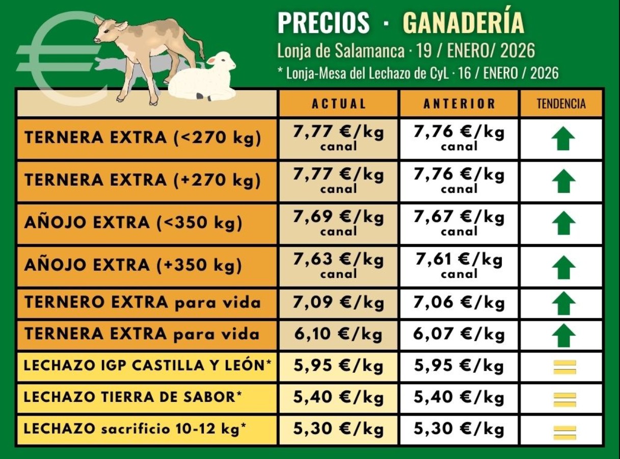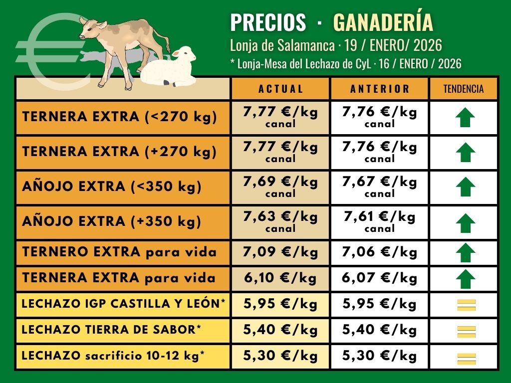 Por su parte, en la lonja semanal de Salamanca, los precios del ganado vacuno sube en todas sus categorías, tanto la ternera, como el añojo o el ternero.