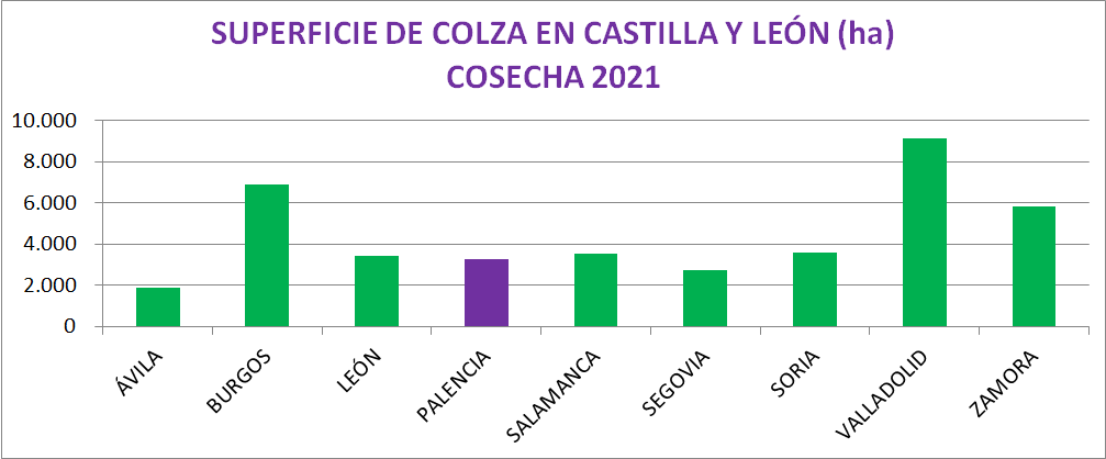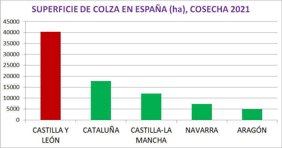 En el ámbito nacional, Castilla y León sigue siendo el motor de la colza, con una superficie de más de 40.000 hectáreas, que representa el 44,5% del total nacional y habiendo tenido en esta campaña un aumento de la superficie sembrada del 42%.