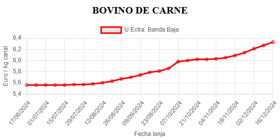 Evolución de la cotización de la ternera de categoría extra (hasta 270 kilos) en la Lonja de Salamanca durante el último semestre (junio 2024-diciembre 2024)