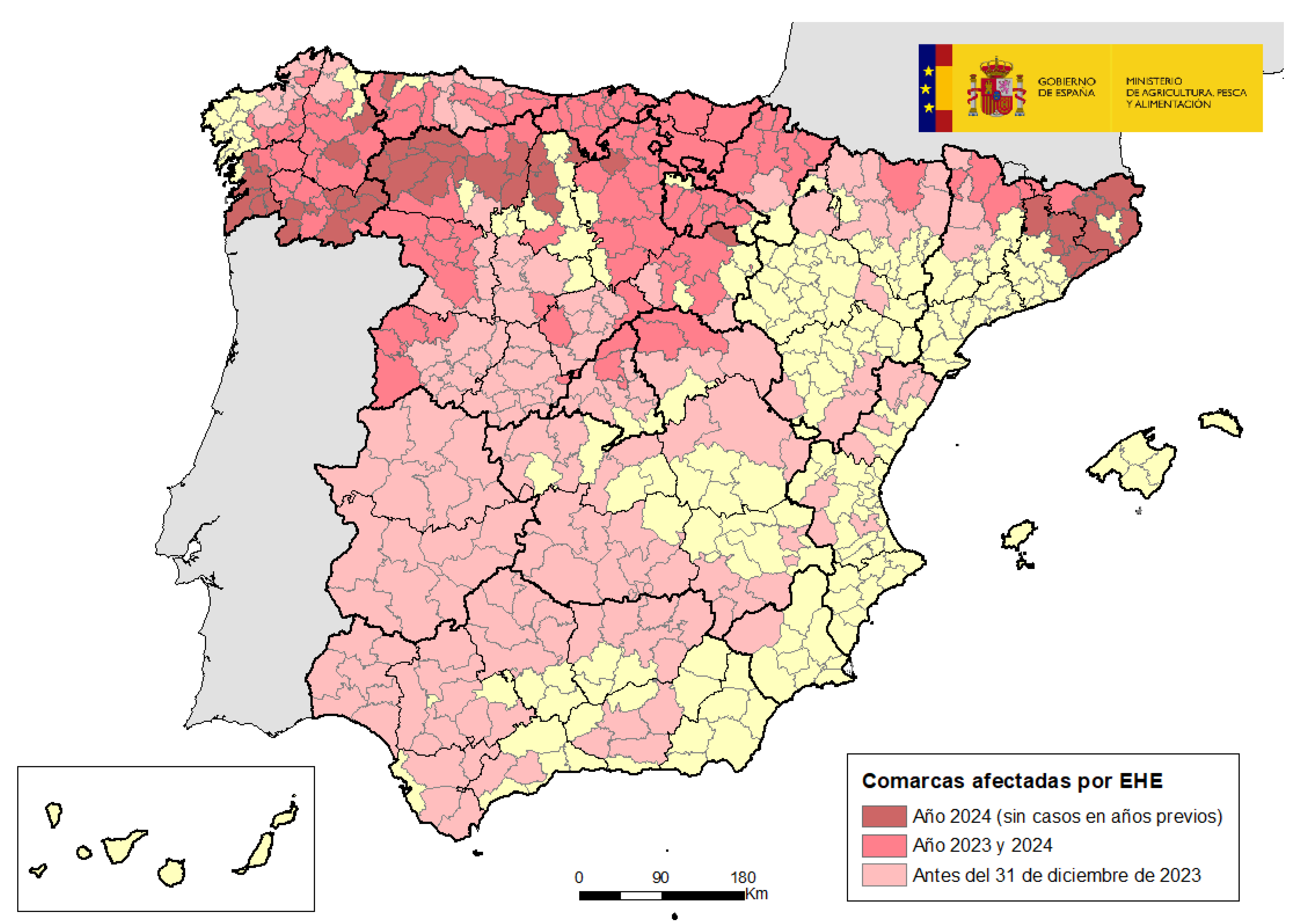 Inicio La Enfermedad Hemorrágica Epizoótica llega a tres áreas veterinarias más: Guardo, Saldaña y Carrión Mapa-EHE-25sep2024