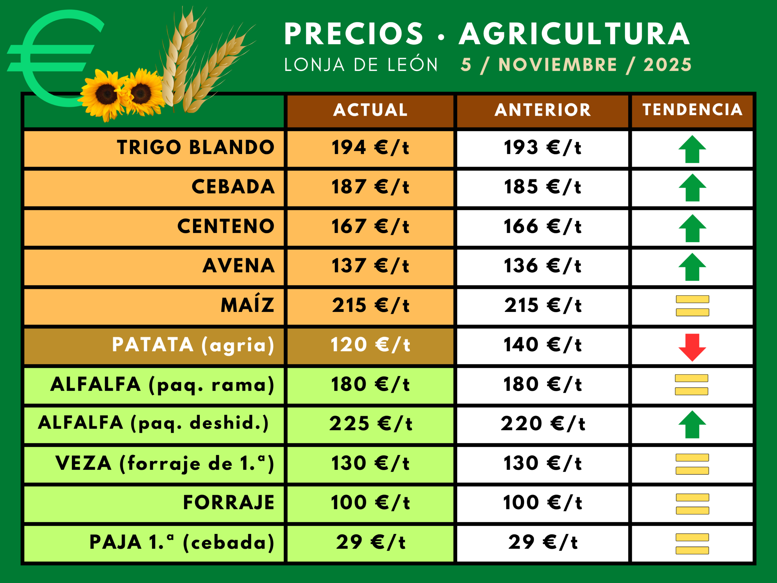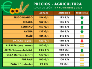 Inicio La retención de producto por unos precios que desaniman la venta reactiva la cotización del cereal Precios-agricultura-5nov2025