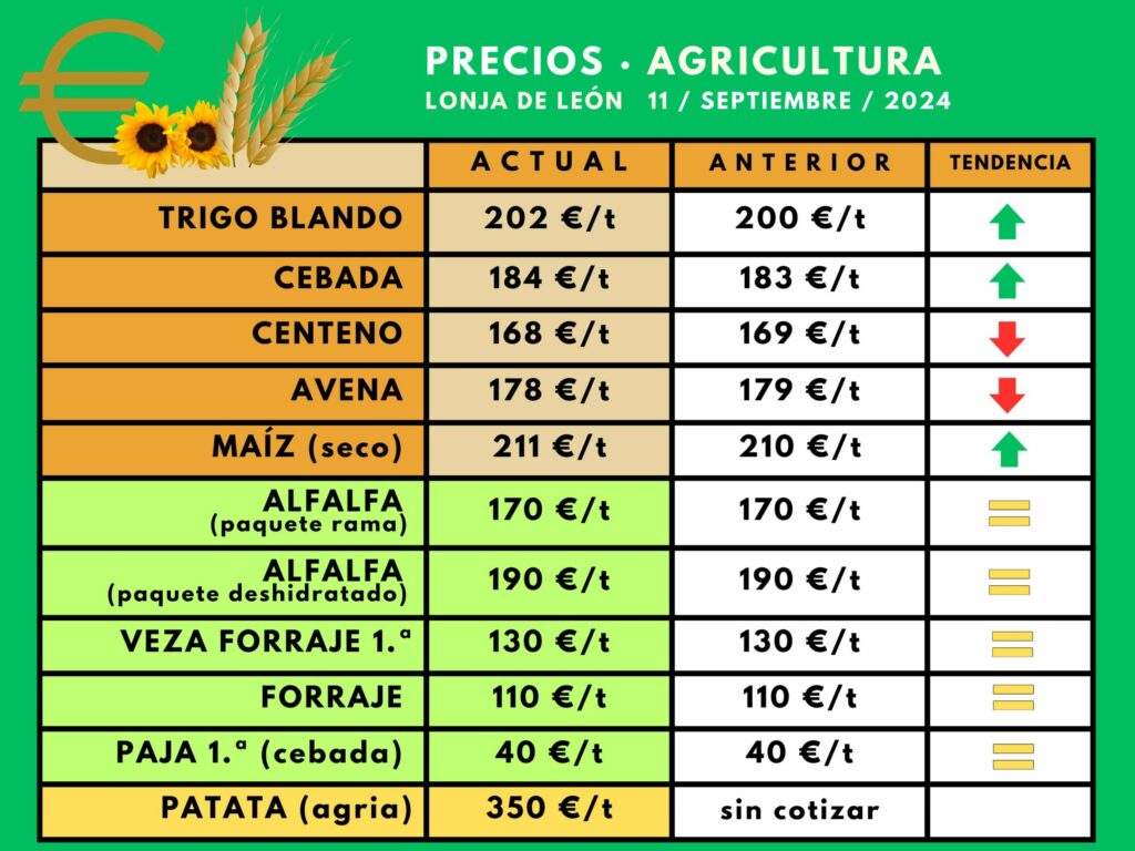 Esta cotización de arranque de campaña es similar a la visada en León hace ahora casi un año: el 20 de septiembre de 2023 la tonelada de patata se movía en los 315 euros/tonelada, que llegaba a 350 euros/tonelada en la variedad agria.