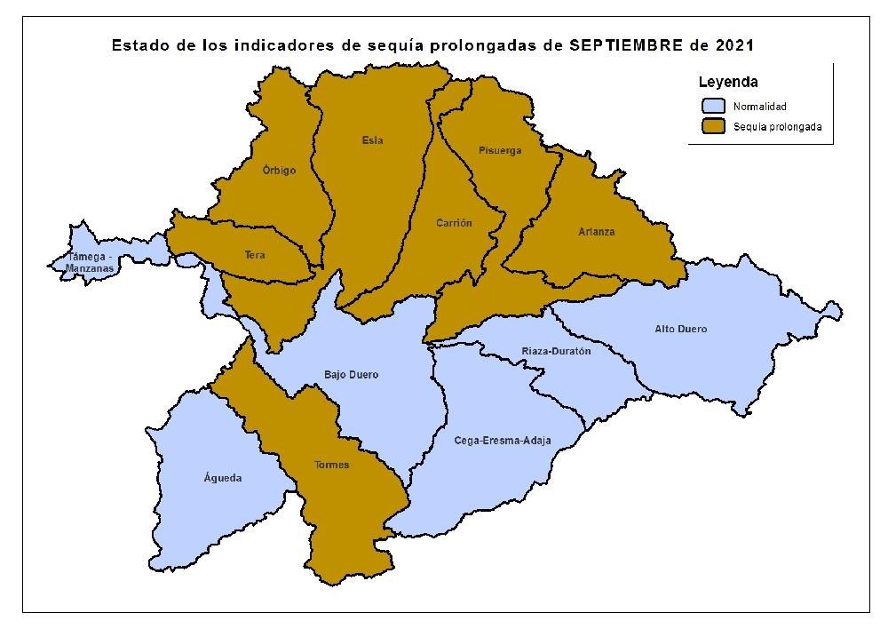 Esta situación de sequía prolongada, que afecta principalmente a la zona norte de la cuenca del Duero, junto al sistema Tormes, es compatible con una situación general de normalidad en la demarcación en cuanto a las reservas. Un caso excepcional es el del Carrión, en el que coinciden una situación de sequía y de bajas reservas de agua (26 hm3 sobre un total de 165 hm3).