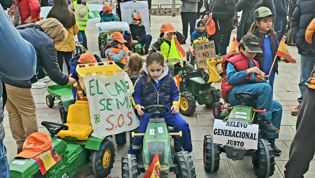 Más de doscientos niños procedentes de todos los puntos de la provincia de Palencia participaron en la tractorada infantil organizada por ASAJA y la alianza UPA-COAG, dentro de la actual campaña de movilización en unidad de acción para defender el futuro del sector agrario. La singular manifestación terminó con una emotiva y entrañable lectura del manifiesto en una Plaza Mayor abarrotada por los vehículos agrarios de los niños presentes y sus familiares acompañantes. El acto sirvió para reivindicar el presente y el futuro de la agricultura y la ganadería en nuestra provincia, así como su importancia para mantener un mundo rural vivo y para la soberanía alimentaria.
