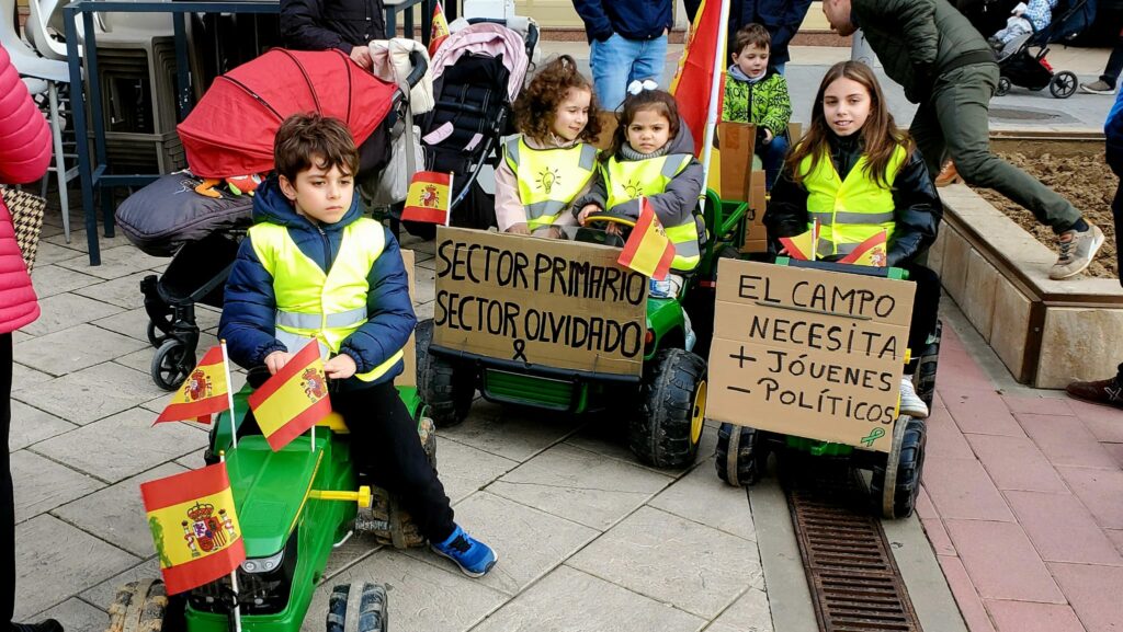 Los niños mostraron en sus vehículos diversas pancartas y carteles con lemas alusivos a la movilización agraria, tanto los proporcionados por la organización como otros muchos que crearon espontáneamente en las vísperas de esta movilización, una convocatoria que alcanzó repercusión mediática a nivel provincial, autonómico y nacional.