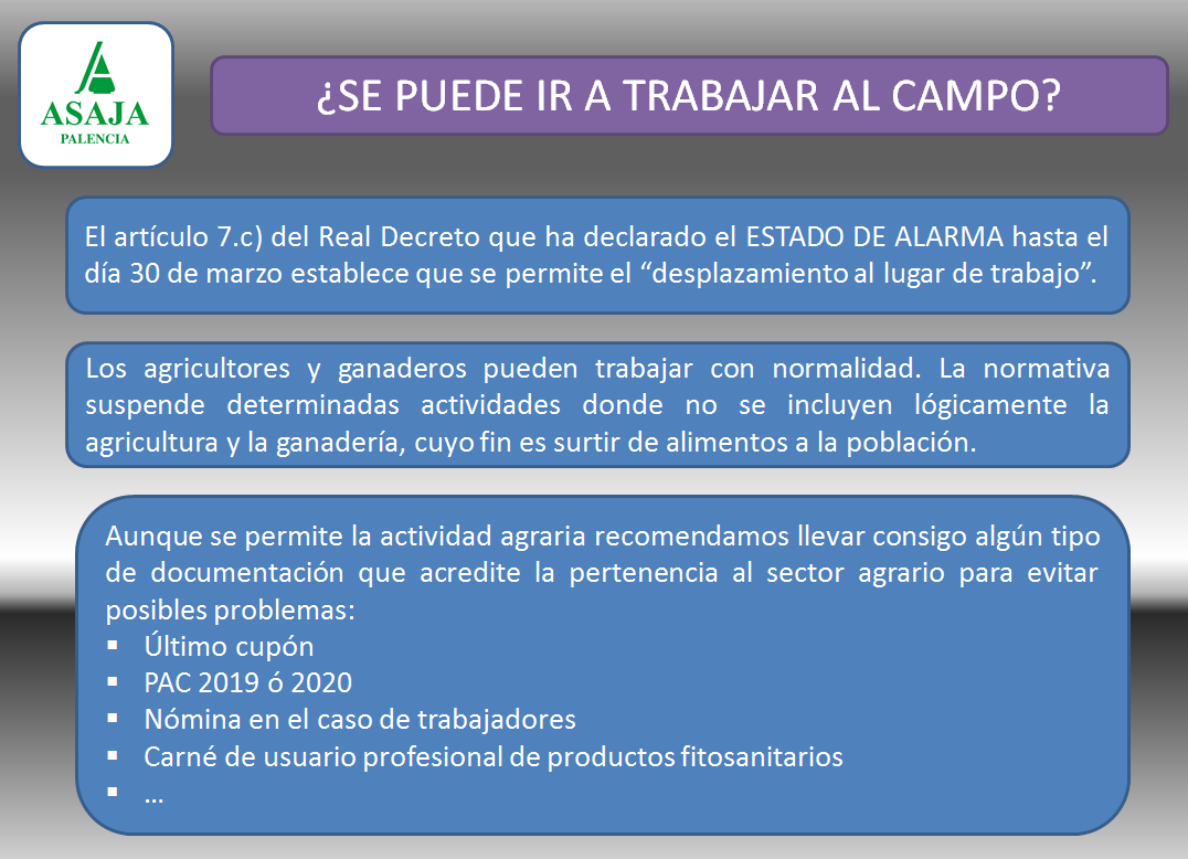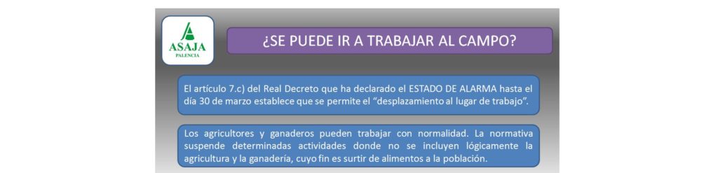 El goteo de dudas y problemas es constante, ya que van surgiendo a medida que se desarrolla la actividad en este contexto excepcional. En este sentido, la red de oficinas de ASAJA en Castilla y León está en continuo contacto con los agricultores y ganaderos, recabando sus dudas y preguntas, y transmitiéndolas a las administraciones competentes para que el sector pueda seguir trabajando con seguridad y confianza. ASAJA recuerda que, en estos momentos, más que nunca, es fundamental no hacer caso a rumores, y acudir a las organizaciones agrarias y administraciones para obtener información clara y veraz.